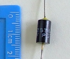 I shall start this page with a conundrum and a plea for help. The device on the right is a Ferranti GD70, as evidenced by its box and also by a label on the small polythene packet that contained it. The seller believed that it is a semiconductor diode, because the 1963 CV Register lists the CV8380 as a 'semiconductor diode' having Ferranti GD70 as prototype. It is tempting to think that GD could mean 'germanium diode'. However I was suspicious because CV8380 is a high-numbered CV series type, and also, it does not look like a diode. Now I have obtained one and examined it closely, it looks even odder to me: the metal cylinder is hollow, and the central electrode penetrates into it. A test with a DVM reveals the device is open-circuit in both directions at the 9V applied by the DVM.